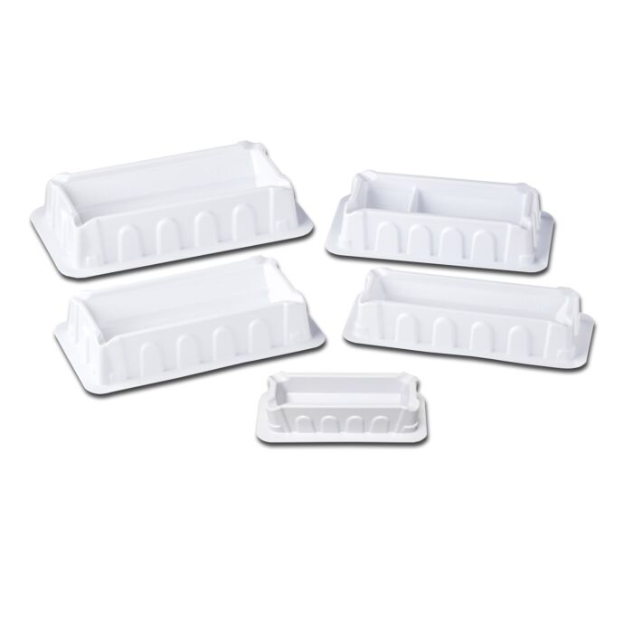 MTC Bio's multi-channel solution reservoirs are designed for use with all multichannel pipettes. Standard 4 channel, 8 channel, 12 channel and various special purpose pipettes are all compatible with these disposable, polystyrene reservoirs. To facilitate easy, dripless pour-off of unused reagents and solutions, all versions have indented "spouts" in each corner. Bottoms are formed with a sharply tapered "V" shape to minimize waste and reagent consumption.