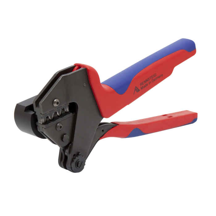 (Solarline 2). The excellent handling, easy exchange of the crimping insert bits and the possibility of adding a positioning aid are facts in favour of these crimping pliers.