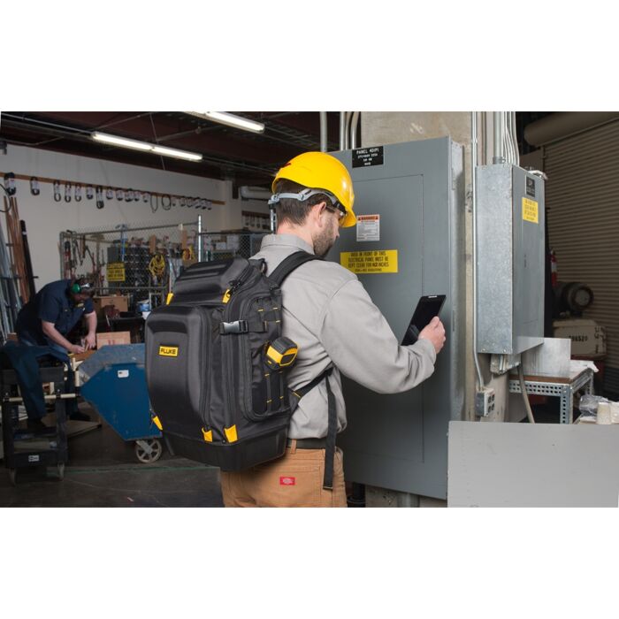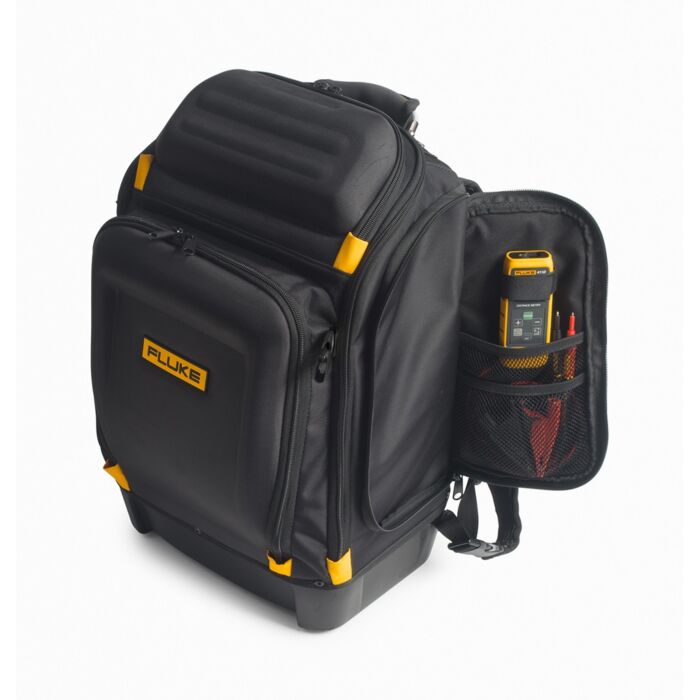 The FLUKE-PACK30 backpack for the professional is built with durable high-quality polyester and features over 30 heavy-duty pockets for storing and carrying your tools to the next job. Three main storage compartments for test tools, hand tools, and a laptop/tablet; a fourth smaller molded pocket for protection of smaller items. Rugged waterproof molded bottom offers protection from the elements and keeps the backpack standing for convenient access to tools.