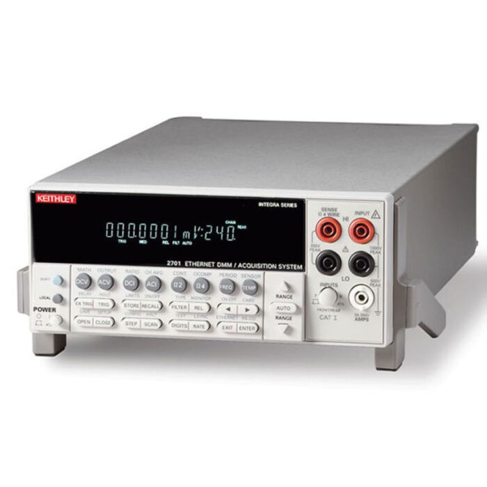 DMM, Data Acquisition, Datalogging System w/2 Slots and Ethernet Support. The Integra 2701 combines precision measurement, switching, and control in a single, tightly integrated enclosure for either rack-mounted or benchtop applications. This cost-effective, high performance test platform offers affordable alternatives to separate DMMs and switch systems, dataloggers/recorders, plug-in card data acquisition equipment, and VXI/PXI systems. The 2701, one of the Integra Series, features plug-in switching and control modules offering unmatched flexibility and testing efficiency for a wide range of industries and applications. System builders can create test solutions with a combination of channel count, cost per channel, and system performance unmatched by any other singlebox measurement system. The input modules provide the flexibility to vary the channel count from 20 to 80 (2-pole), apply a stimulus to the device under test, route signals, control system components, and make precision measurements with up to 14 functions.