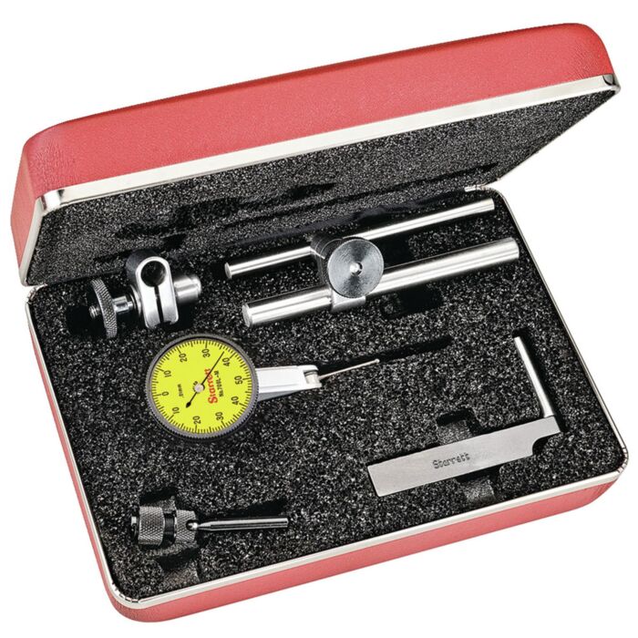 The Starrett 709 Dial Test Indicator with Dovetail Mount offers an easy to read angled head and the flexibility of three dovetail mounts. yellow Dial, 1.0mm Range, 0.01mm Grad, with Attch with Long Ctpt.