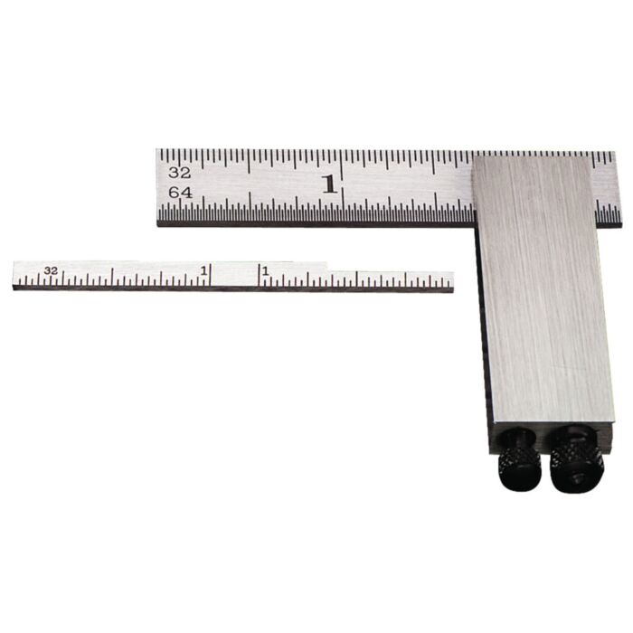 The sliding blades of this tool and diemakers' square can be adjusted at an angle (up to approximately 10_) with the beam for measuring the clearance in dies. 50mm with Metric Standard/Narrow Blades.