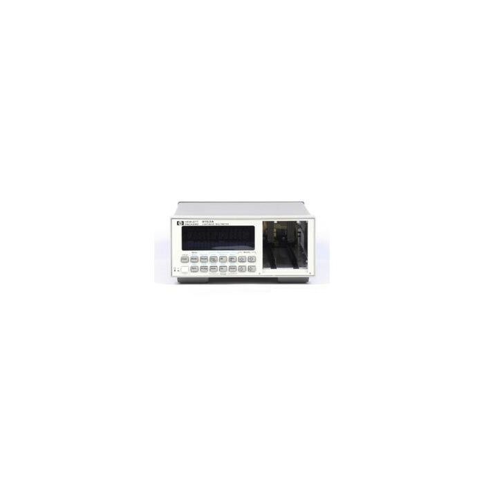 The Keysight 8153A Lightwave Multimeter is a benchtop mainframe with two module slots. This product has a front panel control keyboard and display.
