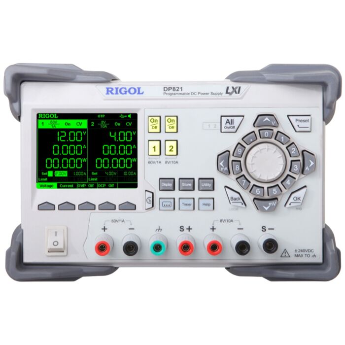 RIGOL DP821 DC Power Supply, Dual Output, 60V/1A & 8V/10A w/ Remote Sense