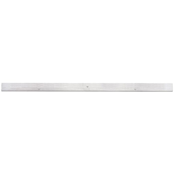 The Starrett 380 Series Steel Straight Edge is precision ground and nicely finished to rigid Starrett standards. It is unexcelled for drawing or scribing straight lines and checking surfaces for straightness. Its thickness and design permit it to retain shape and accuracy, but still be portable and easy to handle. The 380 Series is not beveled or graduated. The 385 Series are beveled one edge, but not graduated. The 387 Series has one edge that is both beveled and graduated in 32nds of an inch. The 380 and 385 Series in sizes 36" and longer are marked with arrows at two suspension points. If the straight edges are brought to the work and used on edge, they should be suspended at these two points to minimize deflection. Most jobs involve the use of straight edges in the flat position – and it is in this position that we check most stringently. 72" (1800mm).